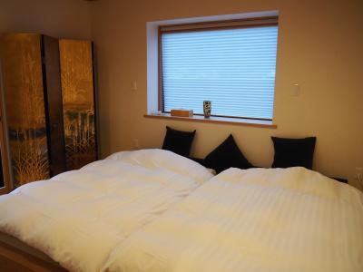 部屋は簡素な作りですが白木が美しく、広さも十分でくつろげます。唯一、寝室のベッドが和風で腰高が低く、老人には起き上がりにくかったのが難点です。