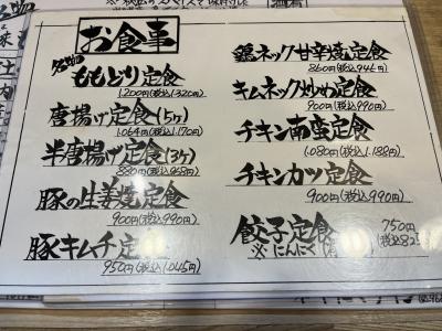 メニューは定食10種の他に一品料理もたくさんあります。店名にもなっているももどり定食 1,320円を選択。常連さんは唐揚げ定食、チキン南蛮定食など他のメニューをオーダーしています。ももどり定食は肉を焼き上げるのに一番時間がかかるようです。どのメニューもボリュームたっぷり、ガテン系です。