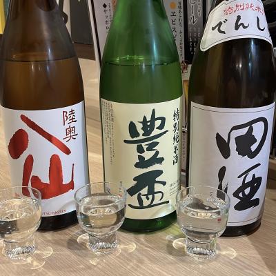中でも日本酒が自慢のようなので、「青森県を代表する3蔵(田酒、豊盃、八仙)のみくらべ」1,180円 を注文。