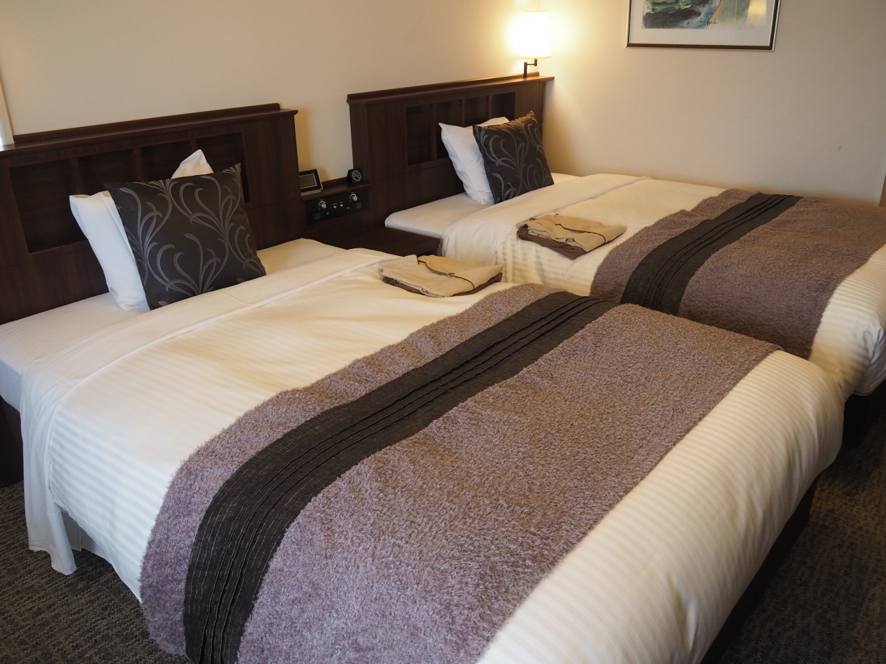 客室はツインベッドに和室が付属していました。申し分ない広さです。