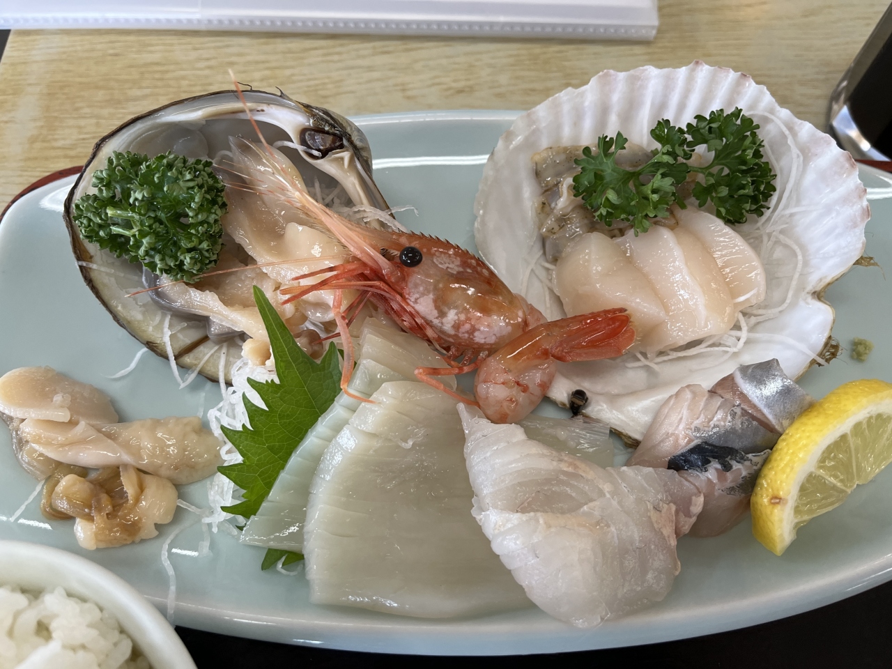 刺身は盛り合わせの種類が多く、イカ、白身魚、ボタンエビ、ホタテ、貝類などがどれも新鮮です。ここでしか食べられないものが多く、私がこれまで食べたどの刺身より美味しいと言って過言ではありません。おばさんが「当店の刺身はお得だよ」と言っていたのに納得です。