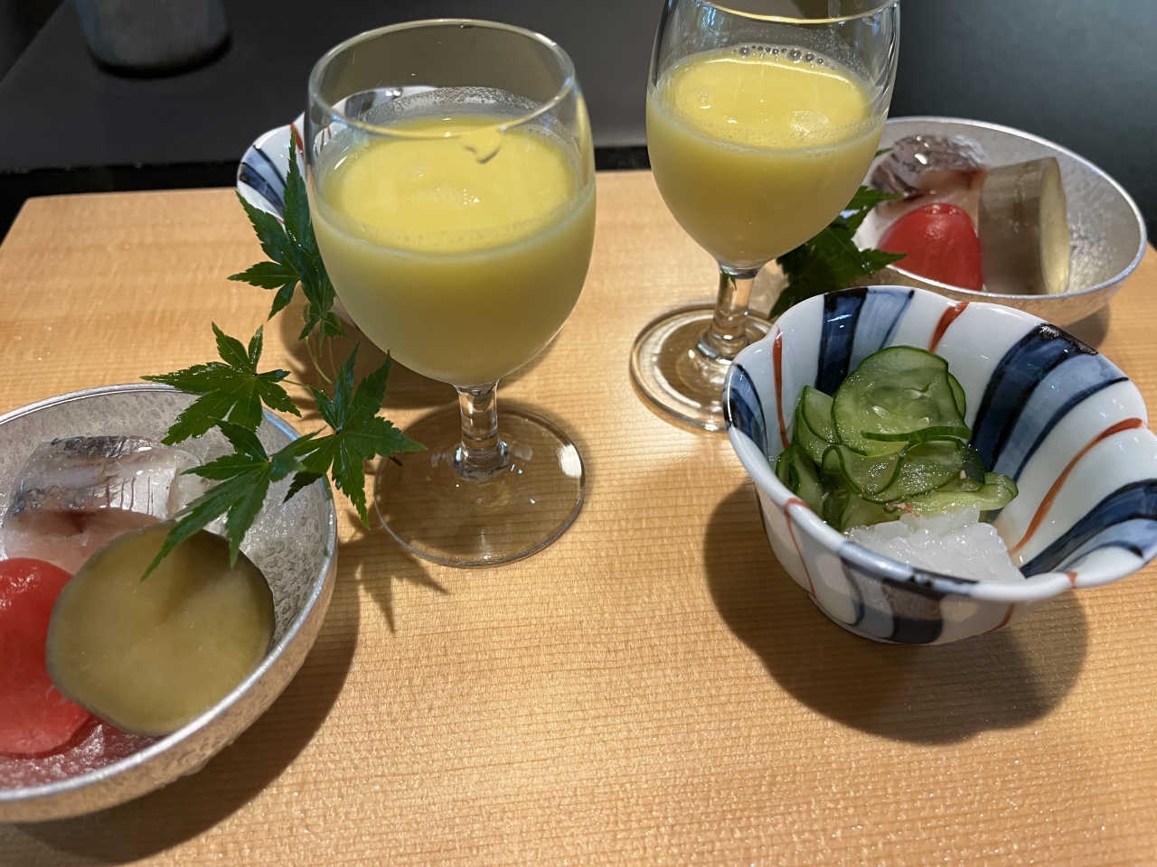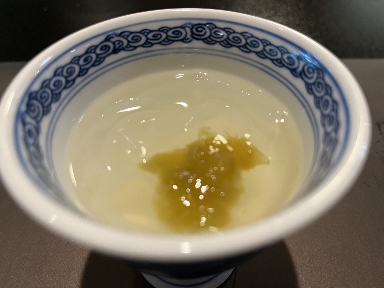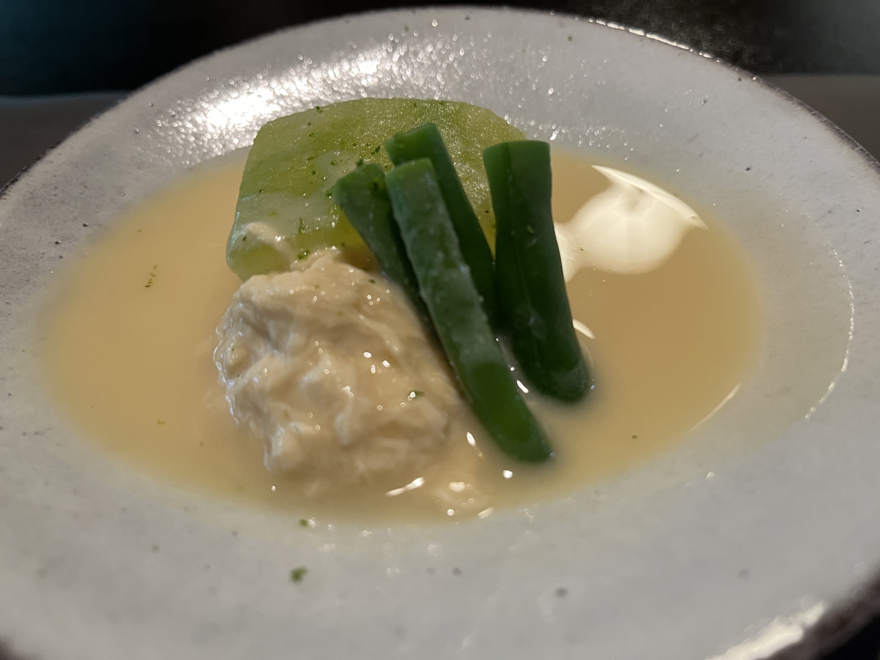 先付(冬瓜、インゲン、ゆばとろの白味噌仕立て)