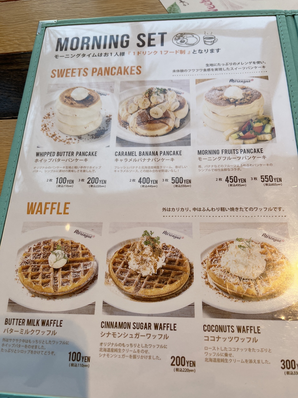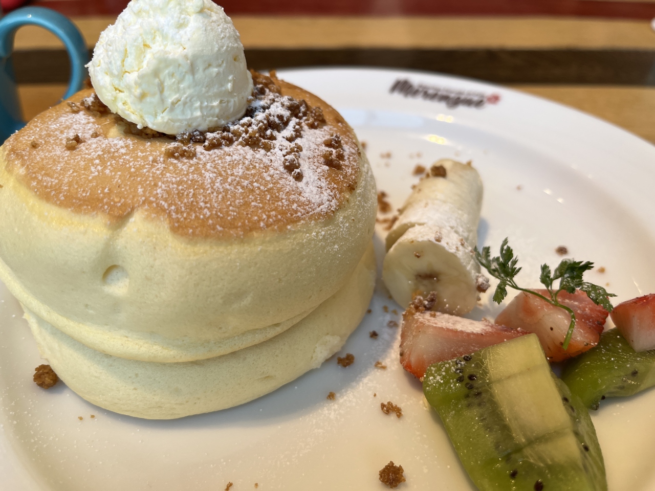たまプラーザ駅徒歩5分の商店街にあるハワイアン・カフェ&レストランです。メレンゲたっぷりのふわしゅわパンケーキが人気です。とりわけ8時〜10時はそのパンケーキが2枚100円(1ドリンク必須)とあって、近隣のママ友たちがひっきりなしに訪れます。平日の朝9時すぎに入店した時はほぼ満席、その後も来店客が絶えず、一時的にはウェイティングも発生するほどです。男性客は私一人、他は全員女性です。ハワイアンテイストたっぷりの店内で、ドリンク1杯+100円でゆったりとおしゃべりを楽しめるのは贅沢な時間です。