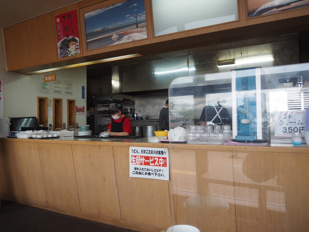山形村のイベントに訪れた際に利用しました。アイシティ21の食品売り場にあるイートイン、コロナ禍のソーシャルディスタンス確保でカウンター5席の小さな店です。少し並んで入店。