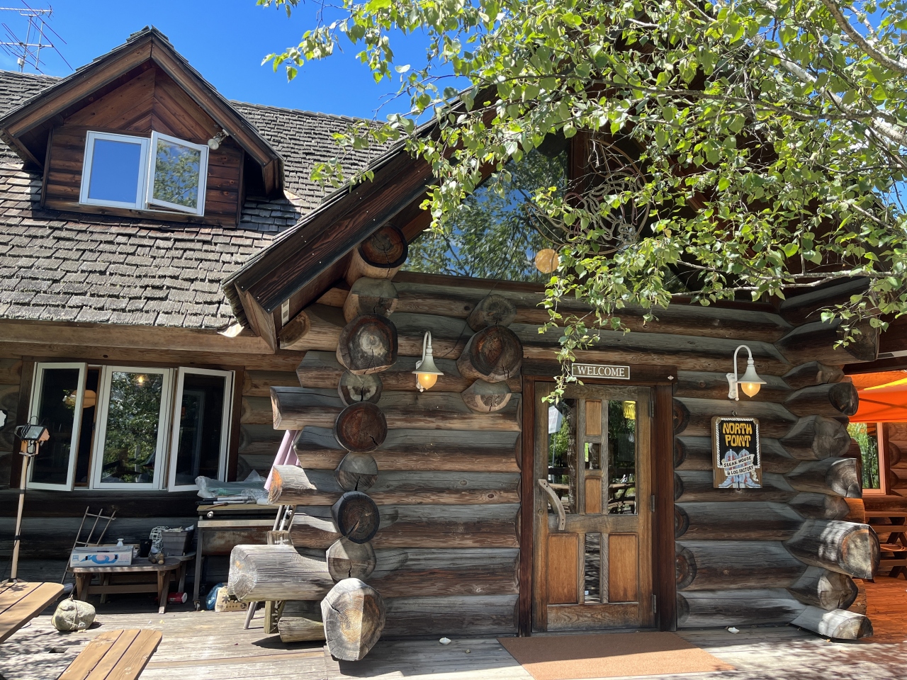 蓼科ビーナスライン沿いのステーキ専門店です。有名なバラクライングリッシュガーデン駐車場の真向かいにあるのでわかりやすい場所です。がっしりしたログハウスの店構え、テラス席では焼肉が楽しめるようですが、それよりペット同伴客で賑わっています。
