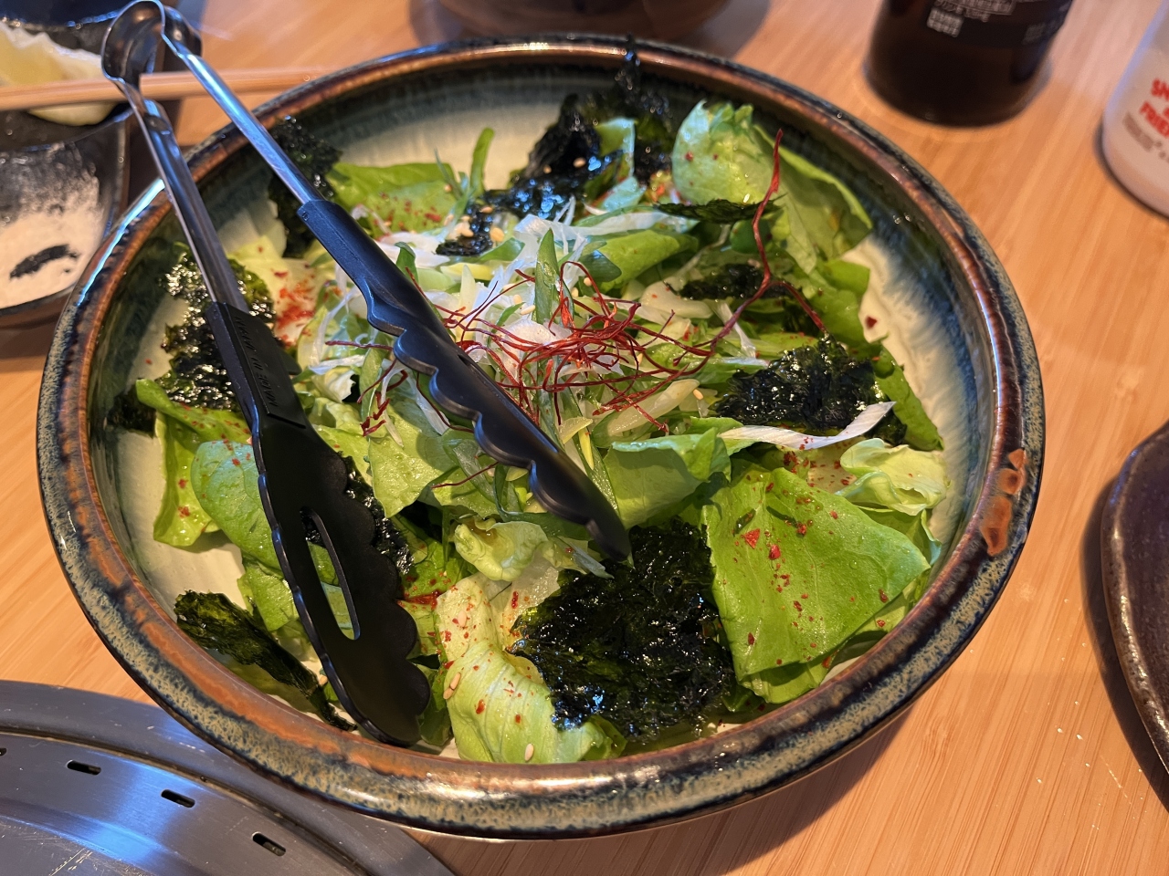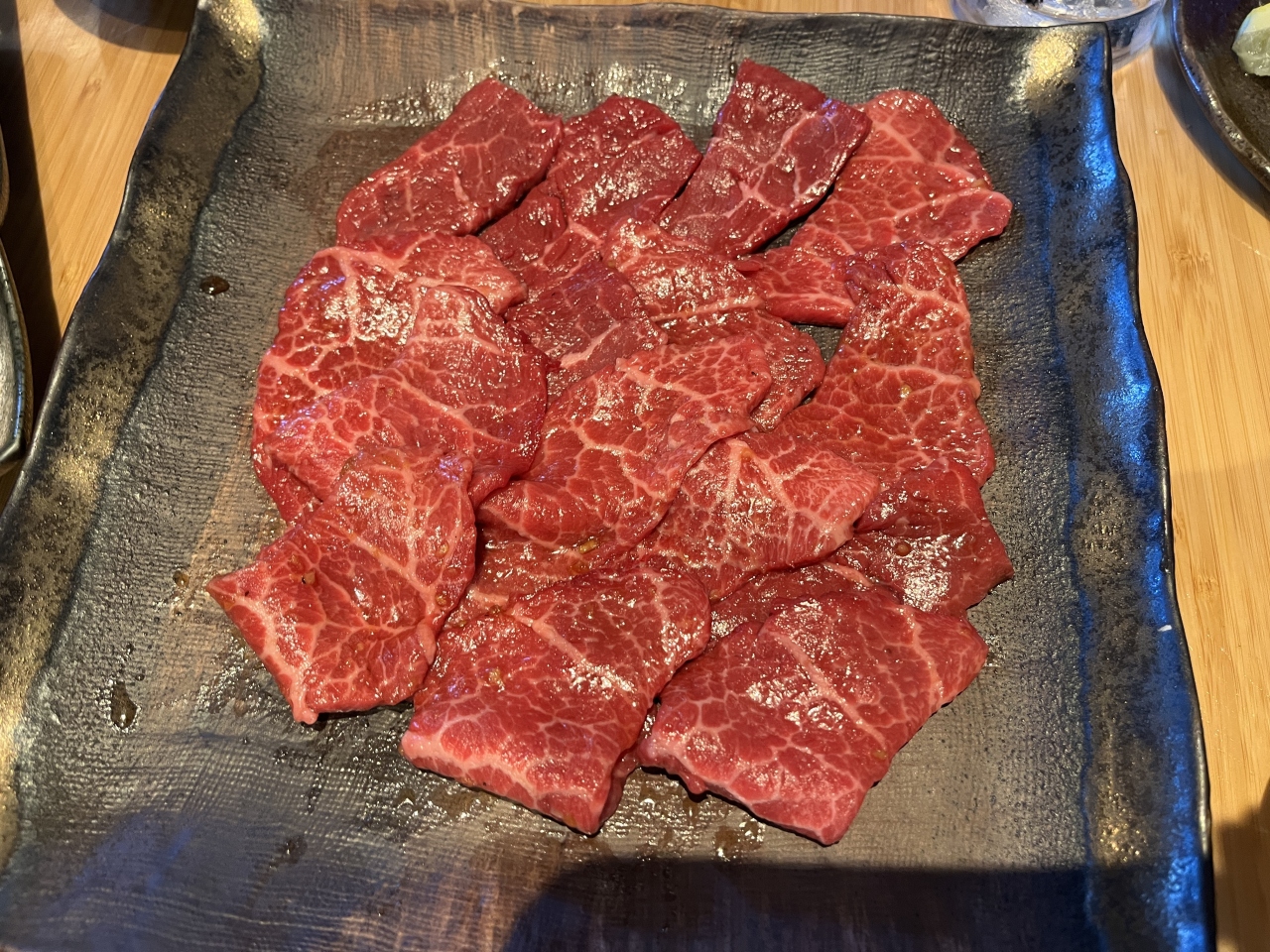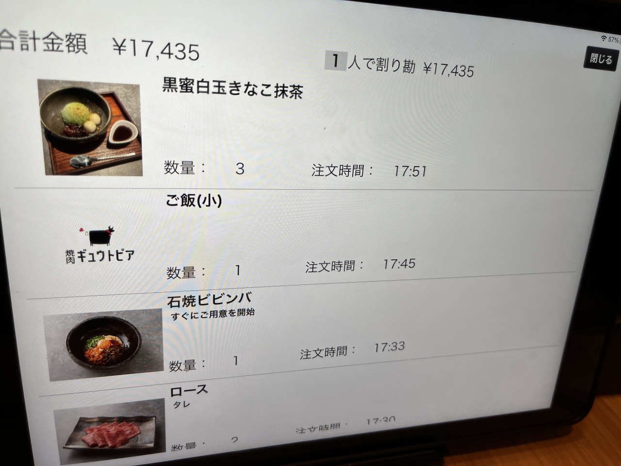 焼肉と言っても我が家では誰もホルモンは食べません。注文する肉はタン塩、ロース、カルビのみ。A5ランクの特選牛肉もあるようですが、普通ランクの肉でも全て新鮮で柔らかく美味しい。ロースやカルビも脂身の少ない赤身で我が家の好みにピッタリ、いくらでも食べられます。今風にタブレットで注文するスタイルなので、追加注文もスムーズです。