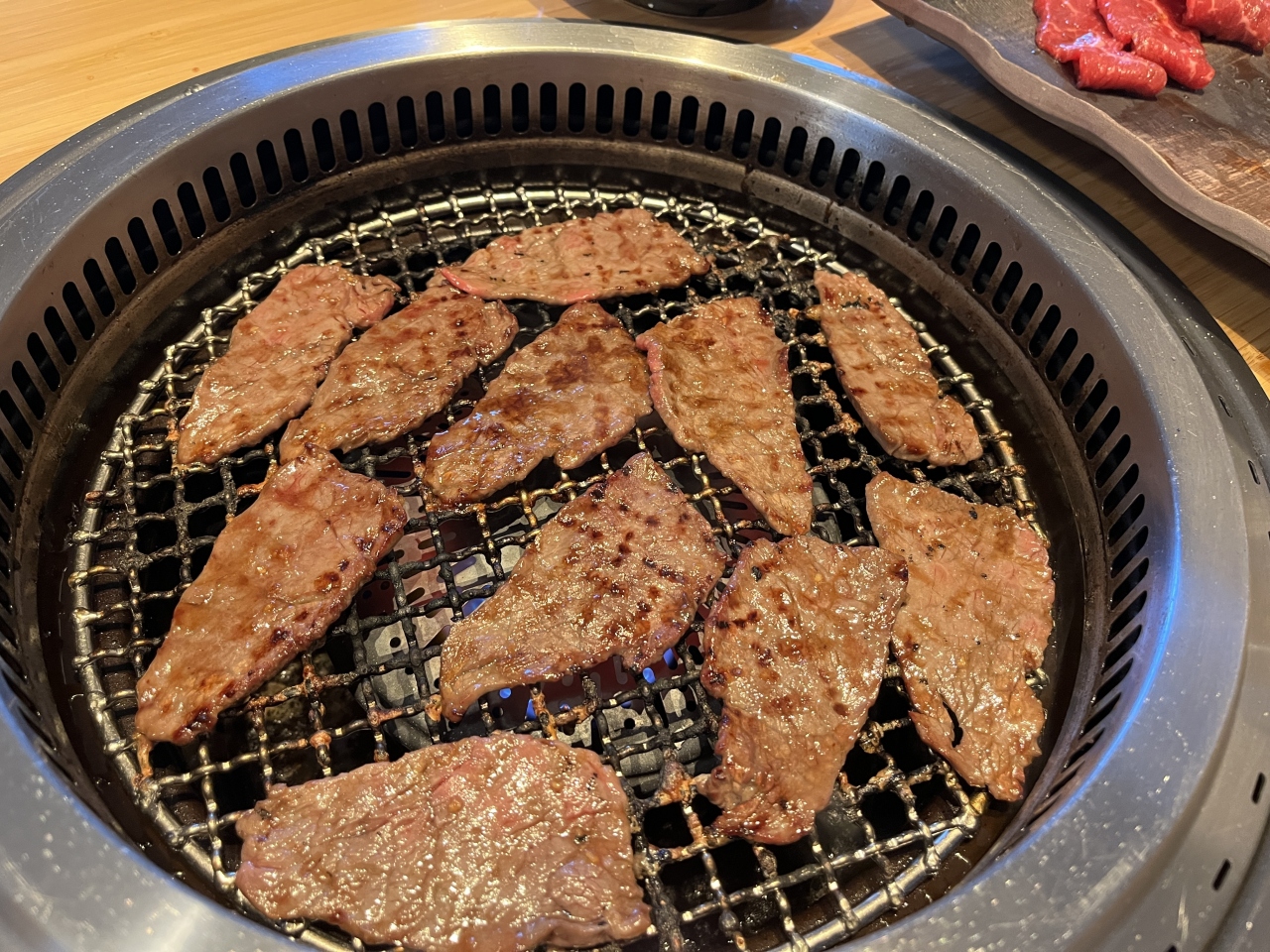 他にキムチ盛り合わせ、サラダ、冷麺、石焼ビビンバ、ご飯、デザート、生ビール、ドリンクなど思う存分頼んで合計17,435円、1人当たり3,000円台。コスパ最高、大満足です。これからも度々通うお店になりそうです。- 旅行時期