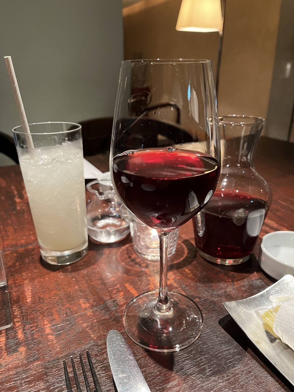 某グルメサイトでイタリアンWEST百名店に選出された人気店。シルバーウィーク初日の夜とあって、ほぼ満席の人気です。夜7時に予約済みなので、庭の眺められる奥まった窓際の席に案内されます。