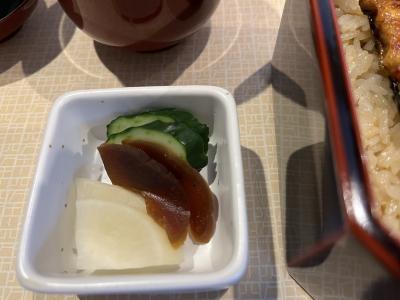 ひつまぶし+α の鰻釜が人気のようですが、量を食べられない高齢者なのでお重箱「竹」@3,630円を選択。着席して20分後に一口サイズの茶碗蒸しが出てきます。熱々で卵は柔らかめ、一切れ入った鰻が美味しく期待が高まります。それから20分ちょっと経って、ようやく重箱に納められた鰻が提供されます。待ち時間がちょっと長め、心静かにゆったりと待ちましょう。そのうな重はふんわり柔らかく、タレはあっさり目でうなぎの美味しさを際立たせ感動モノです。コスパ最適、量的にもちょうど良いと思います。肝吸い、付け合わせの漬物もメインのうなぎを損なうことなく、大満足です。