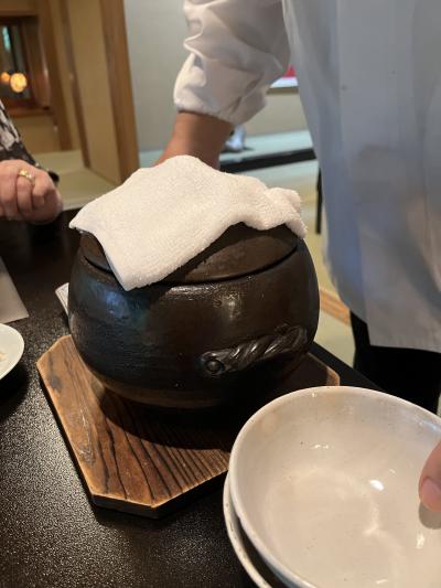 食事(山形夢ごこちの土鍋炊き込みご飯に高知の新生姜まぜ、料理長自ら給仕)