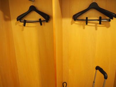 ロッカーに扉はありませんが、二つに分かれていて夫婦別々に使えます。ただし、ハンガーが少なくて不便。