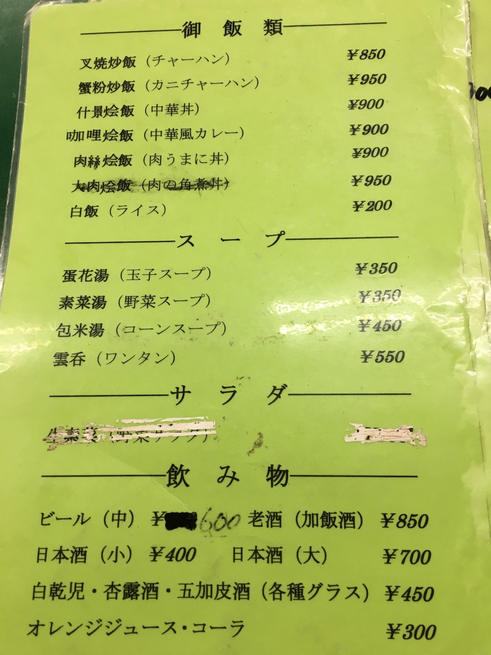 店内は予想通り年季が入っていますが、丁寧に清掃され清潔です。メニューは多くはありませんが、中国料理を謳う程度には揃っています。とはいえ、麺類主体、餡掛けそばが得意なようです。