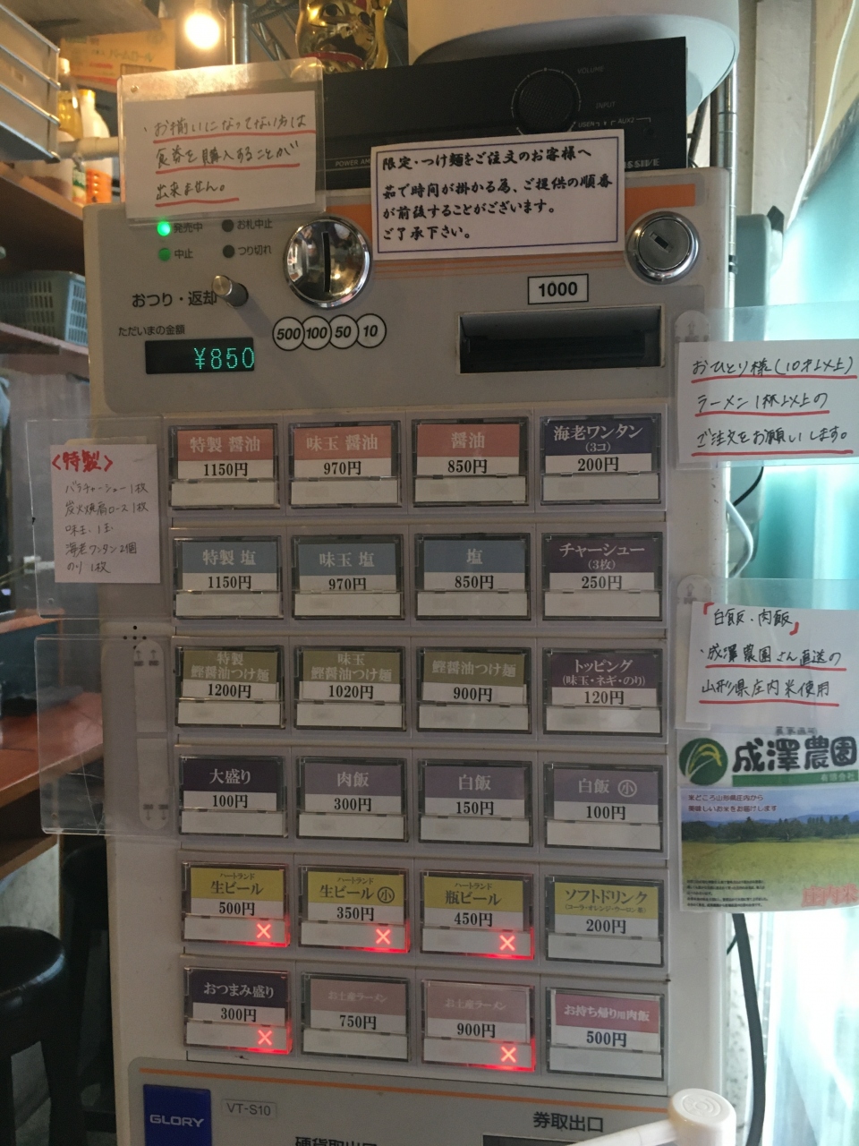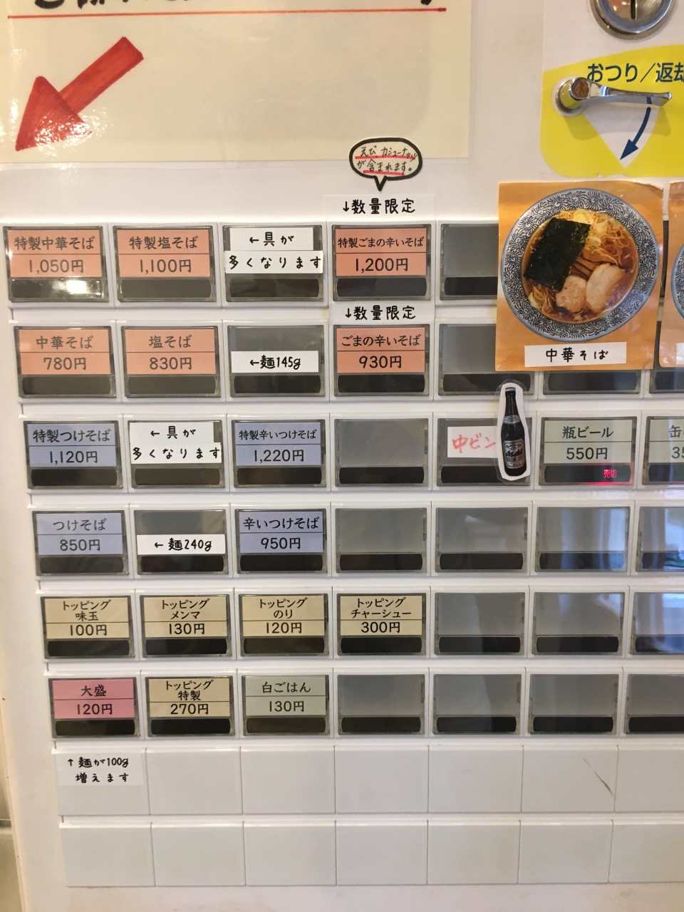 券売機で中華そば 780円を購入。事前に食券を渡してあるので、着席後1分で提供されます。
