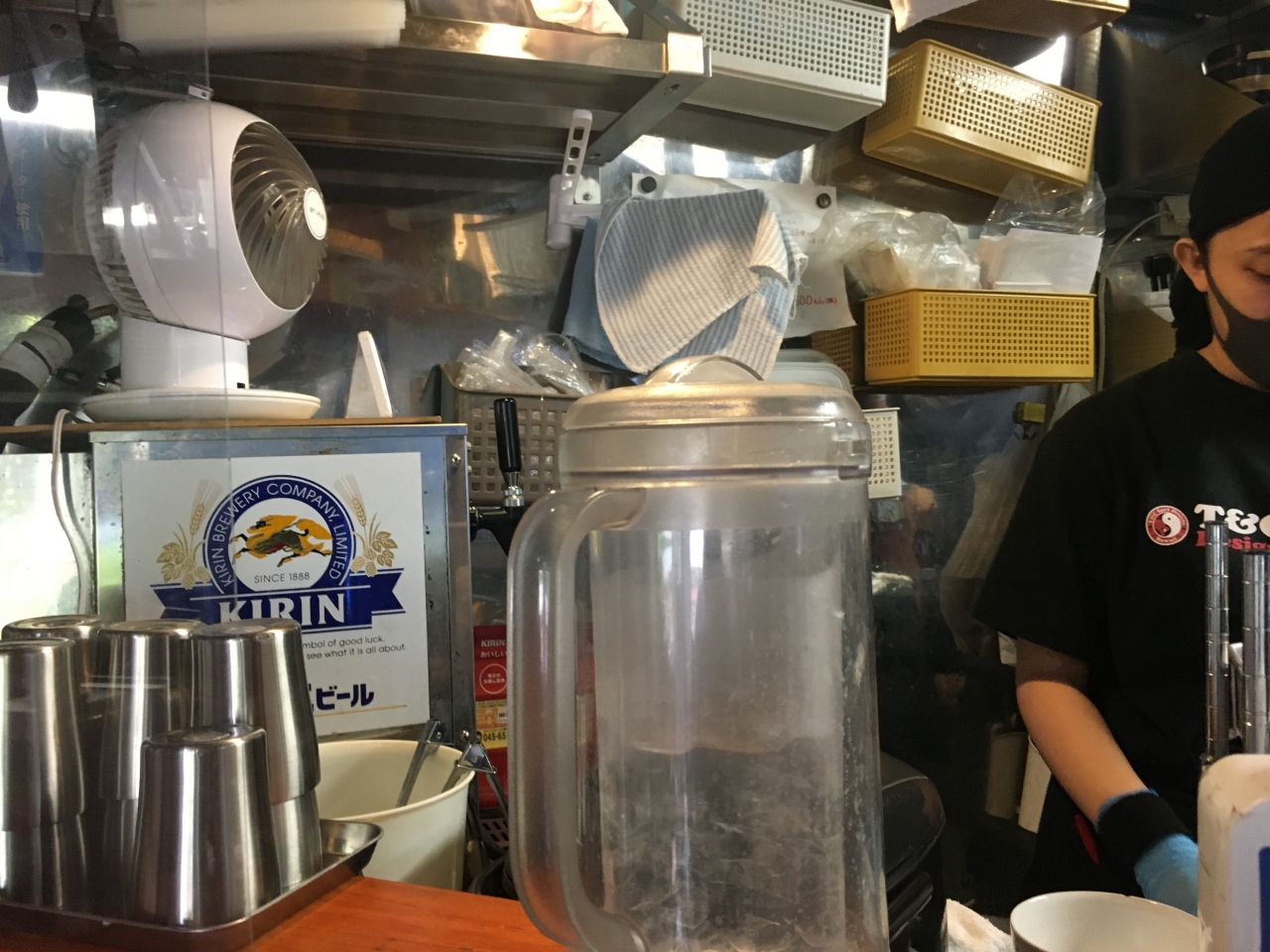 水やレンゲ、ティッシュペーパーなどは1ヵ所にあり、セルフサービスです。ほとんどが常連客で手慣れたものです。