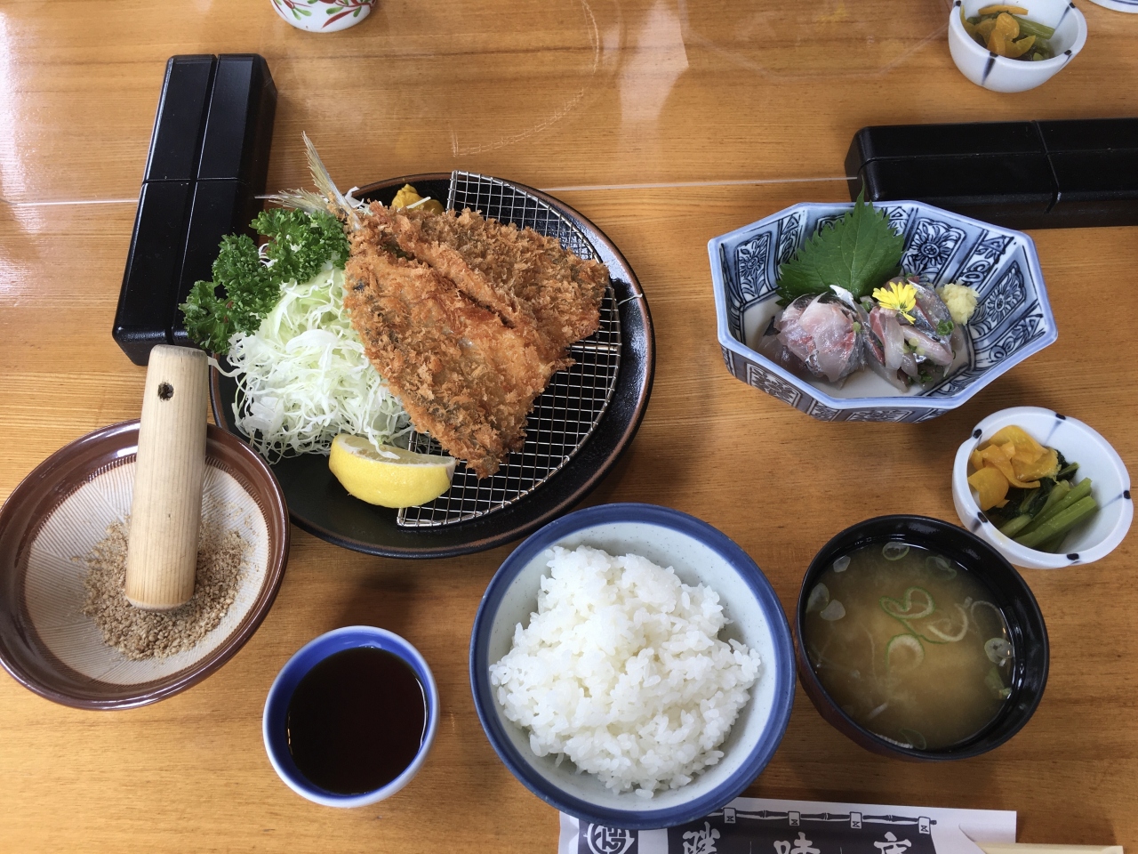 鰯定食のアジは海なし県とは思えないほど新鮮でプリプリ、アジフライはさすが専門店。あまりの美味しさに妻はご飯と味噌汁をおかわりするほど。