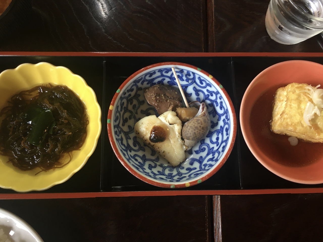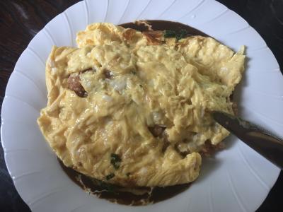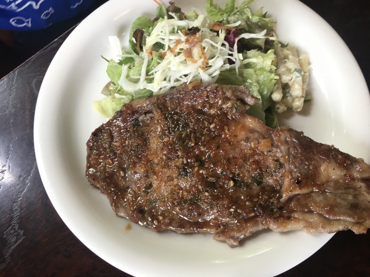 私はお昼の定食でチキンソテーをチョイス、妻はふわとろオムライス、孫たちはステーキランチを注文。お昼の定食にはちゃんとした3種小鉢(この日は、揚げ出し豆腐、もずく、バイ貝と魚の煮物)が付いて驚きです。どれもボリュームたっぷりで美味しい。孫たちも大満足です。