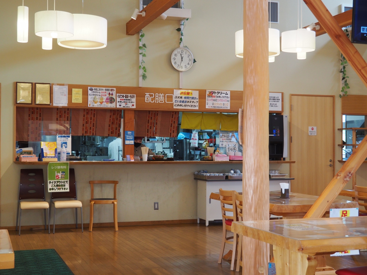 青木村の五島慶太未来創造館を訪れた際に立ち寄りました。道の駅あおきにあるレストラン、そば・うどんからカレーライス・ラーメンまでなんでもあります。道の駅自体が2017年4月にリニューアルオープンしたので、施設はまだ新しく清潔感があります。店内は広く、席数も十分。大型観光バスが訪れても大丈夫な作りです。自動券売機で食券を買い、カウンターで料理を受け取るセルフサービスです。