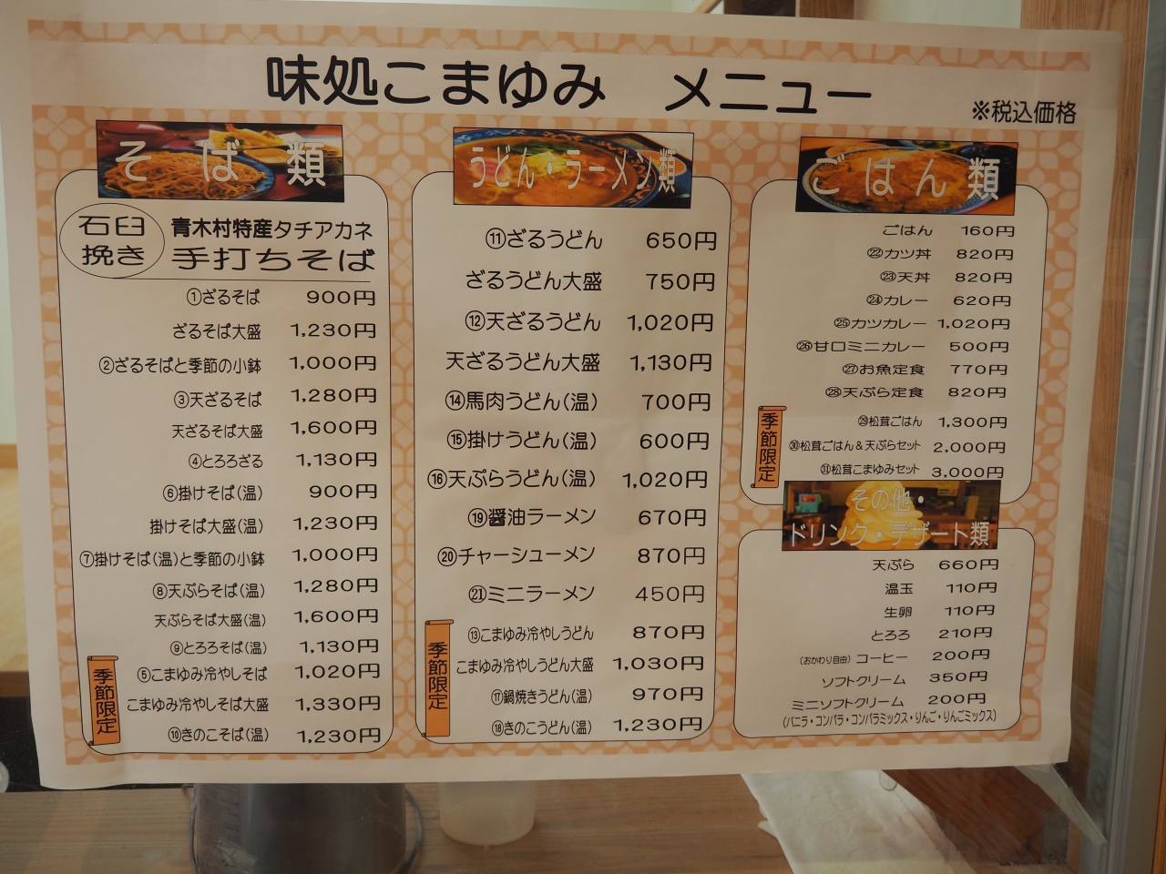 道の駅あおきのレストラン。世界最高峰のタチアカネを使った蕎麦が人気です。