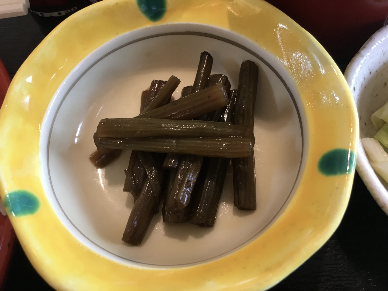 当店のウリは、なんといっても青木村特産そばのタチアカネを使ったそば。世界最高峰の香り、旨味、食感だそうです。4人ともざるそばを注文しました。季節の小鉢はきゃらぶきとキャベツの浅漬け。正直、そばの味はよく分からないのですが、シコシコと噛みごたえがあり香りも味も良いと思います。やはり当地に来たらこれを食べないと心残りでしょう。