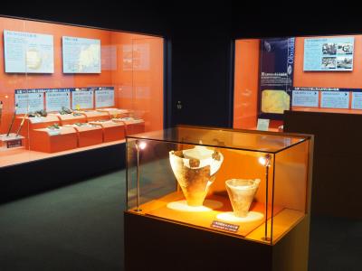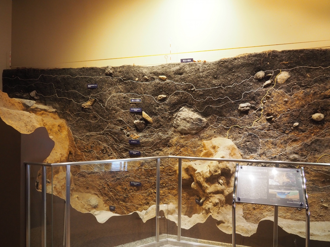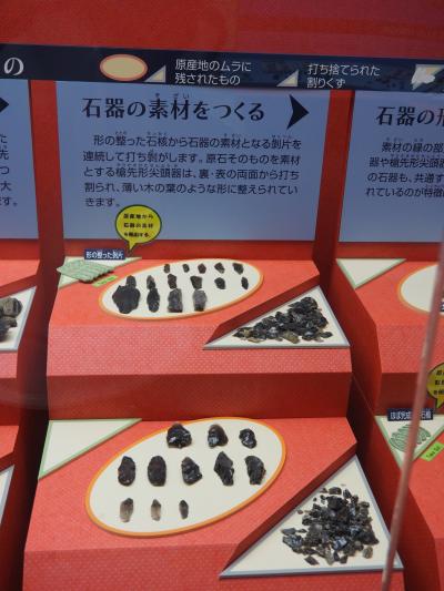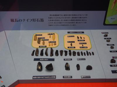 ミュージアムには旧石器時代の鷹山遺跡群と縄文時代の星糞峠黒耀石鉱山の発掘調査の成果や、加工・流通の様子などが膨大な出土品とともに詳しく展示されています。縄文時代に諏訪盆地一帯が多くの人々を引き寄せ、全国1・2位を争う遺跡密集地帯であった理由が理解できます。