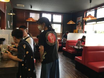 午後1時前後でしたが、客の出入りもそこそこ。中年以上の男性客ばかりです。交通量の多い道路に面し、狭いながらも駐車場があるためか、仕事途中の昼食に立ち寄る人が多いと見受けられます。たまたまでしょうが、私ともう一人の高齢者以外はみんな似たような紺色のジャンパーを着ていたのが、この店の性格を表していて面白かったです。皆さん昼休みの休息を十分取られたのではないでしょうか。