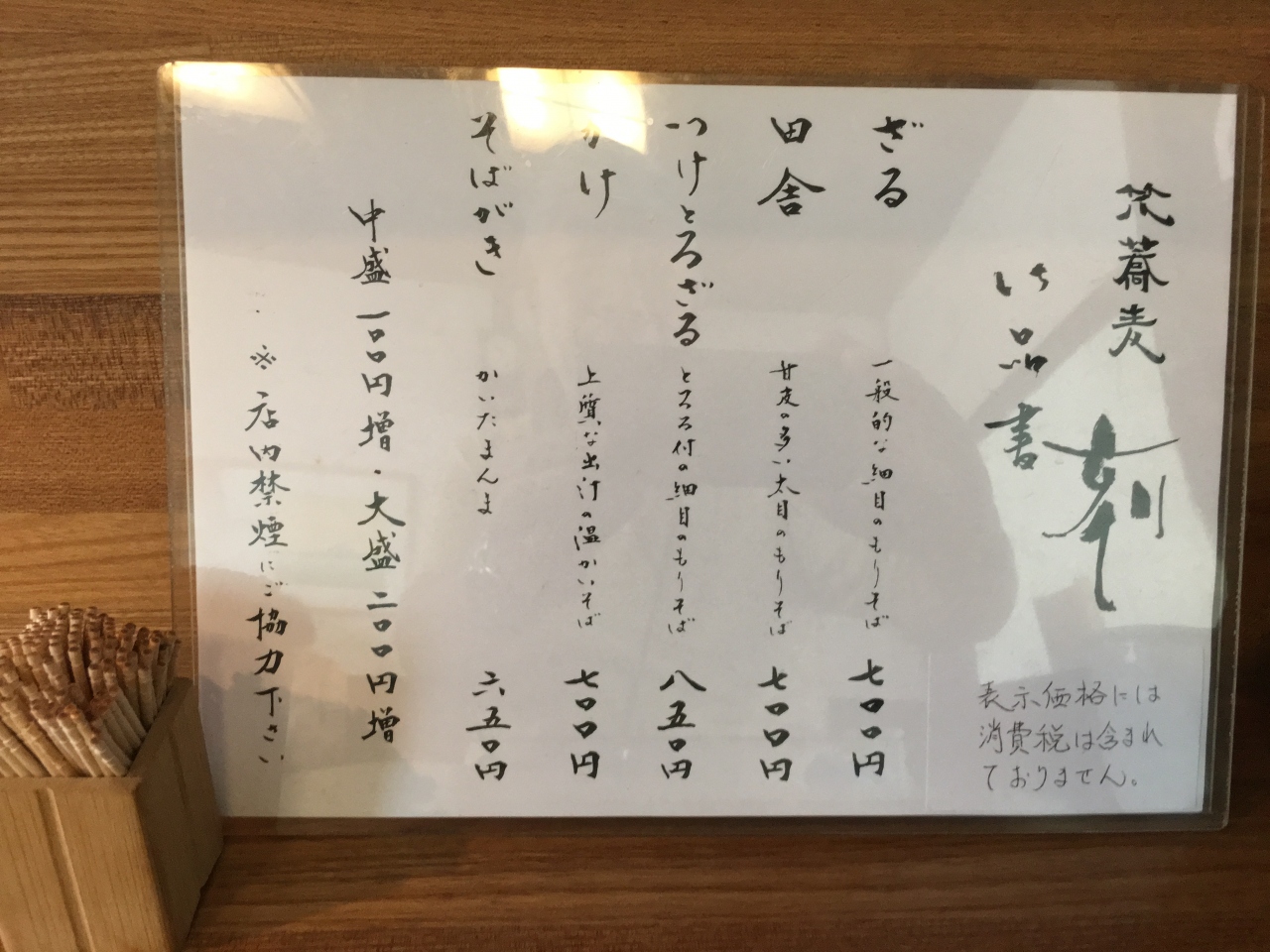 メニューは5つだけ。天ぷらなど、そば以外のメニューはありません。こだわって一人で賄うにはそれが限界かもしれません。そのぶん価格は良心的です。