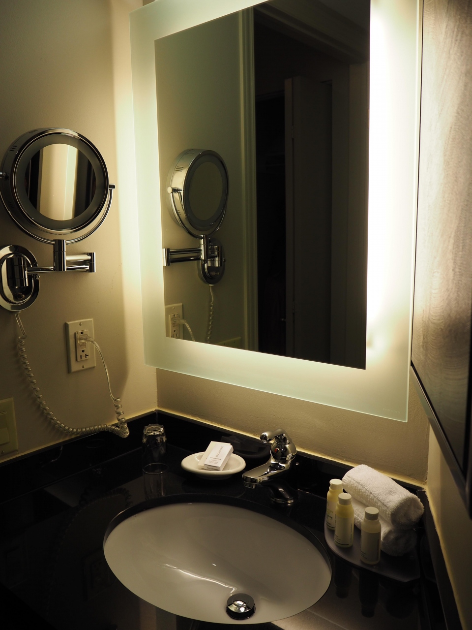 アンダーズらしいモダンで洗練されたインテリアに心動かされます。部屋の広さも十分、バスタブはありませんが、シャワーは最新で使いやすいです。