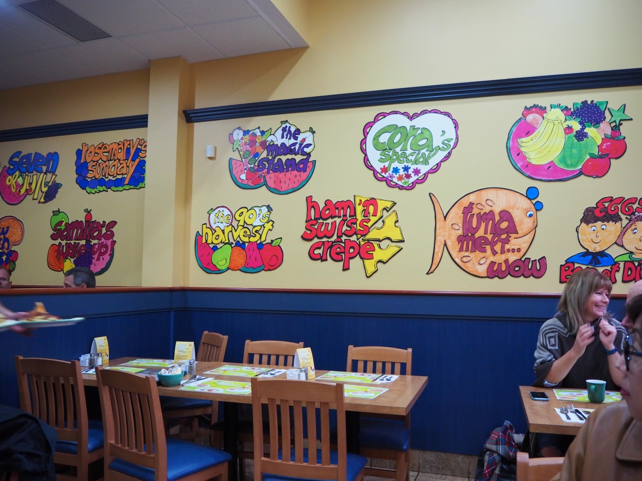 店内はポップな絵があちこちに飾られ楽しげ、メニューもカラフルな写真付きでいかにも美味しそうです。