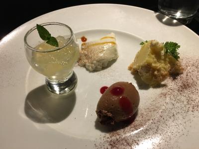 二人ともCENA Bコース(4,000円)にしましたが、前菜、パスタは多彩なメニューから選択、メインは魚か肉のチョイス、デザート4品、コーヒーか紅茶という内容です。見た目は美しく味も申し分なし。量は多すぎるくらいですが、美味しいので完食です。コストパフォーマンス最高です。