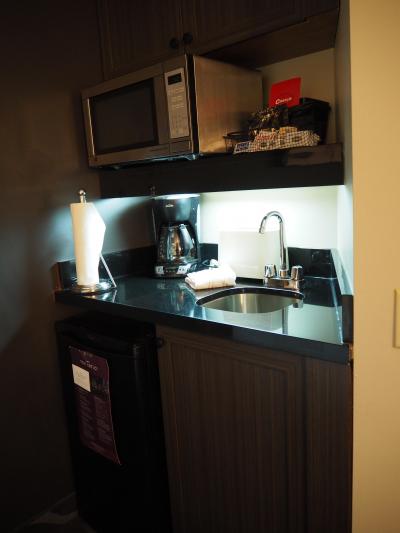 全室が家族の長期滞在に耐えるコネクティングルーム仕様、広さも十分、バスタブ付きです。電子レンジ、流し台もついています。