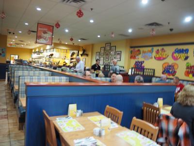 店に入ろうとしたら、5〜6人の若者がプリプリ怒って出て来ました。直前にカナダの農協風の陳情団(勝手な想像です)40名が入店し、ホールスタッフが一人しかいないので待たされたようです。店内は100席くらいある大きな店、メニューも豊富で確かに時間がかかりそうです。