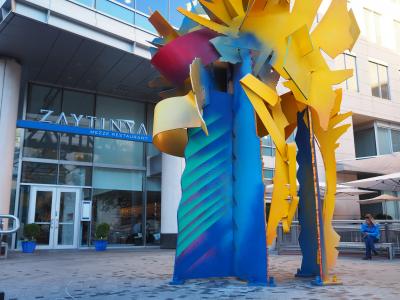 タクシー運転手に店名を告げたらすぐわかったようなので、かなりの有名店です。集客施設が数多く集まる繁華な交差点にあります。店の前のモニュメントが特徴です。
