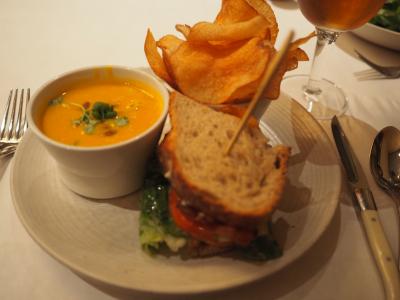 店内を見渡すと、スープとサンドイッチのハーフセットを食べている人がいます。あまりお腹が空いていなかったので、私はそれ、妻はバター・レタス・サラダだけを注文しました。味もボリュームも文句ありません。
