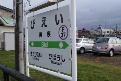 30分くらいで美瑛駅到着〜!!富良野より暖かく感じます。相変わらず雨は...