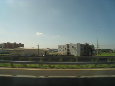 ツアーのバスが迎えに来て空港に向かって出発。バスからの景色。台湾ともお...