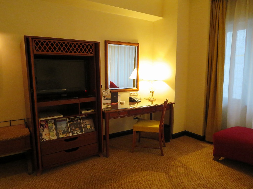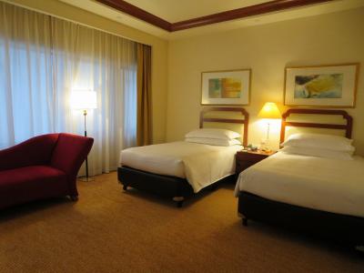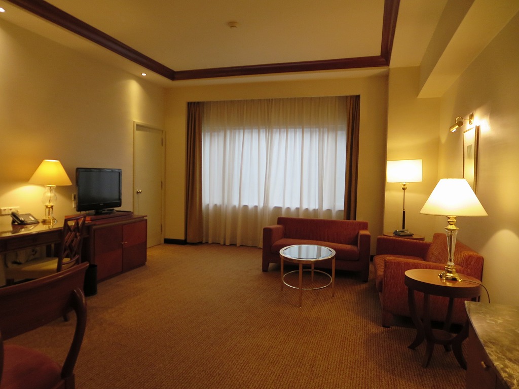 お値打ちツアー参加だったのですが、フロントで突如無料グレードアップを告げられ、なんとスイートルームに。そのため、客室はもちろん広く、トイレも2つ付いていました。天井も高くて開放的です。何より清潔。