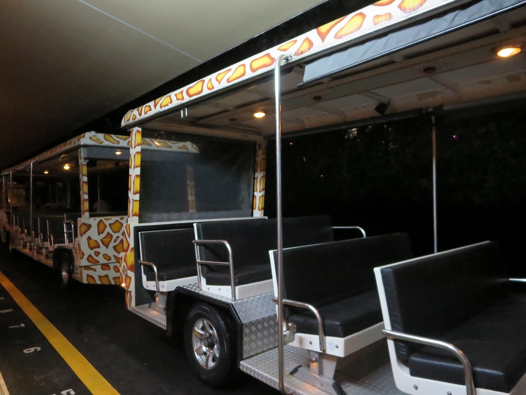 市内からは30分程度での到着。夕食を済ませた後に、ショー、園内トラムと続きます。