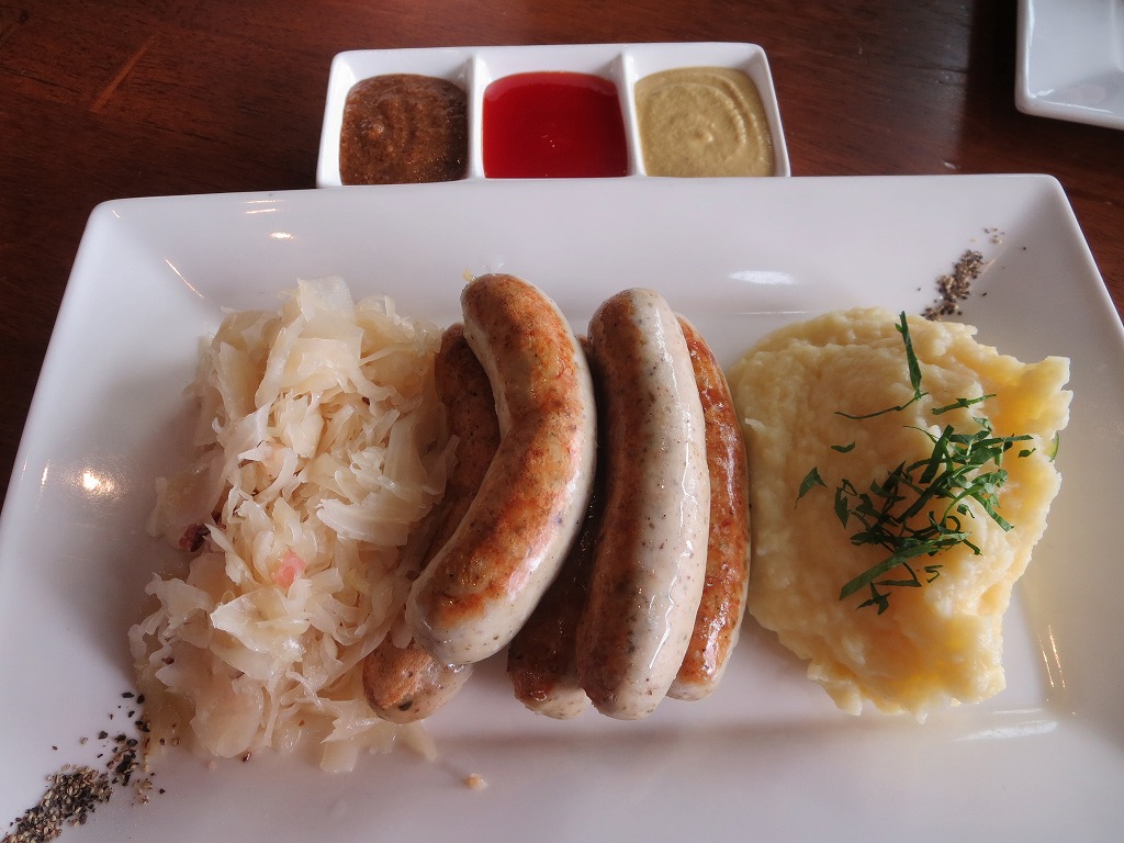 ポークソーセージはたっぷりのザワークラウトとマッシュポテトが嬉しいです。
