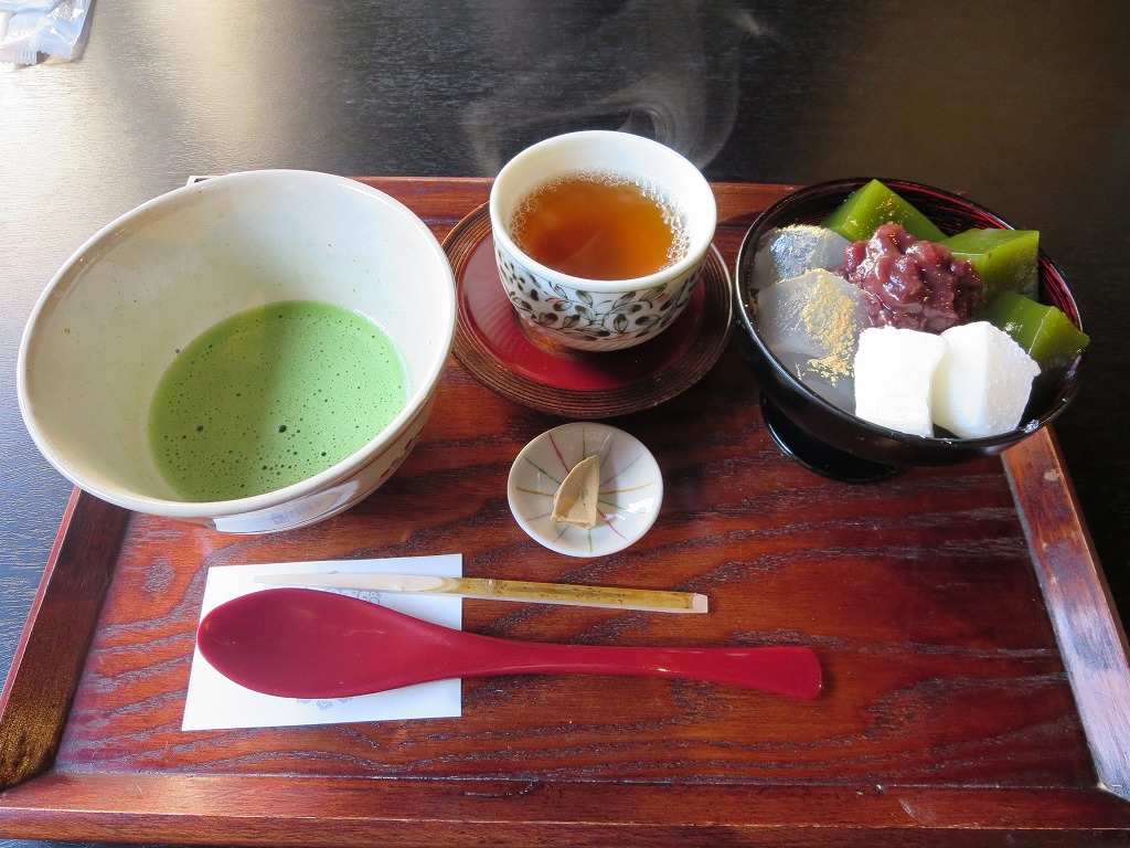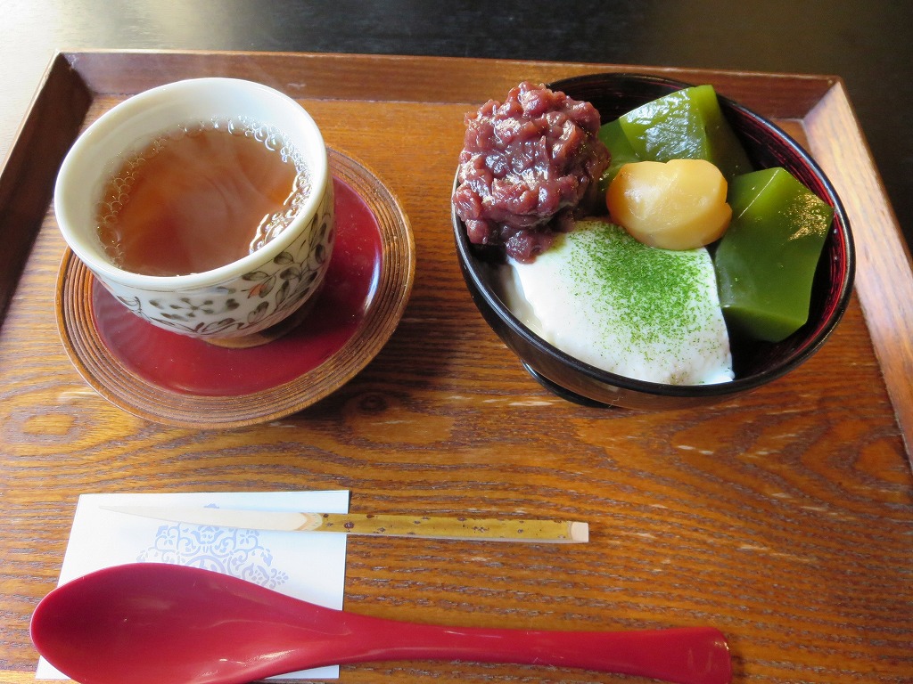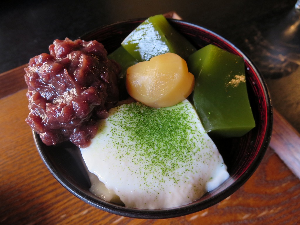 もう一つは期間限定の飛火野。ブランマンジェと大和茶わらび餅、粒あんのマリアージュ。こちらも美味。