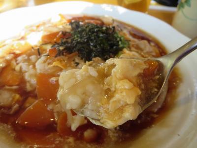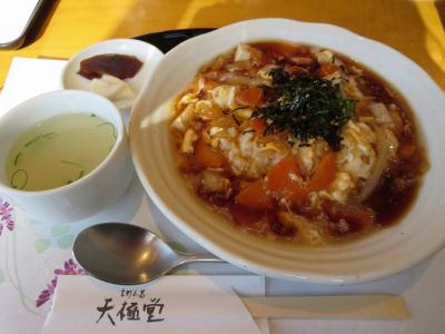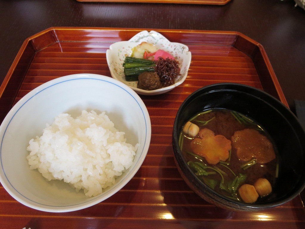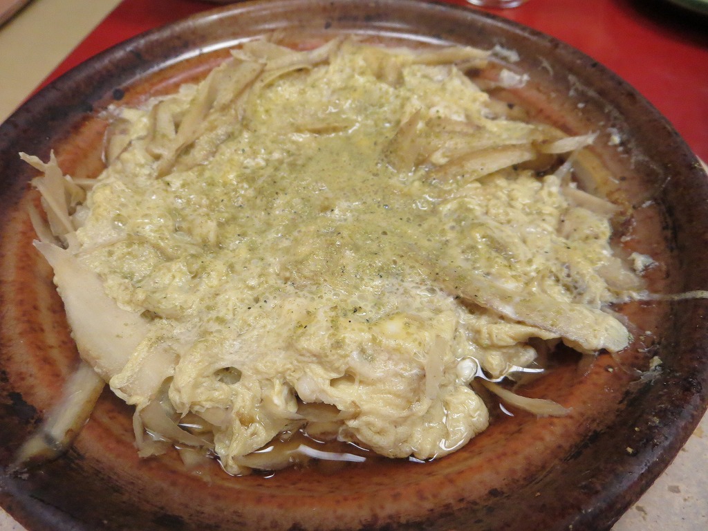 吉野うどんは、しっかりとしたお出汁にしょうががきかせてあって、見た目より食べ応えのあるお味。葛とじご飯は、色味は濃いものの、とっても優しいお味。いずれも胃にしみわたります。