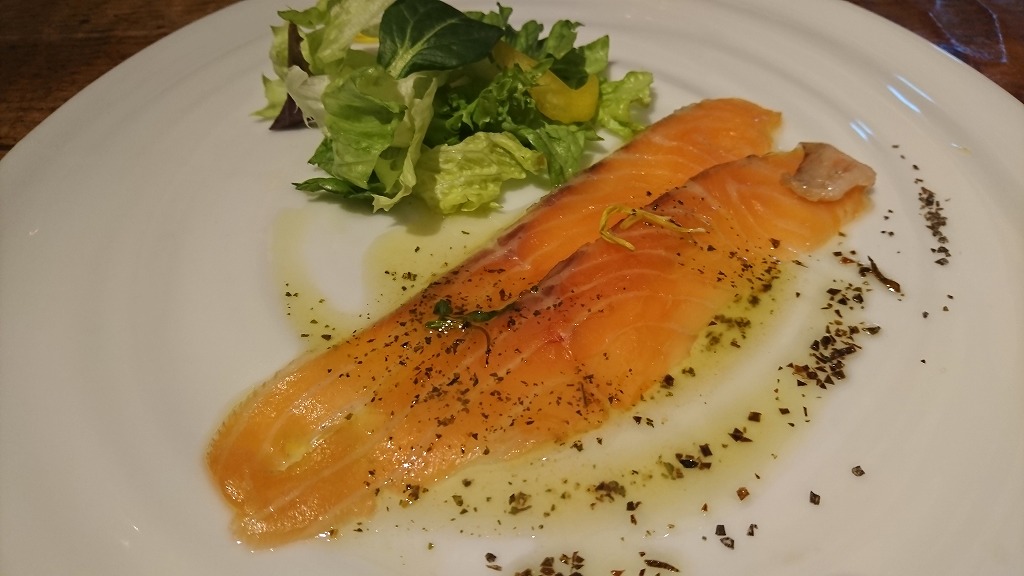 ・サーモンのカルパッチョ 金谷ホテルドレッシング