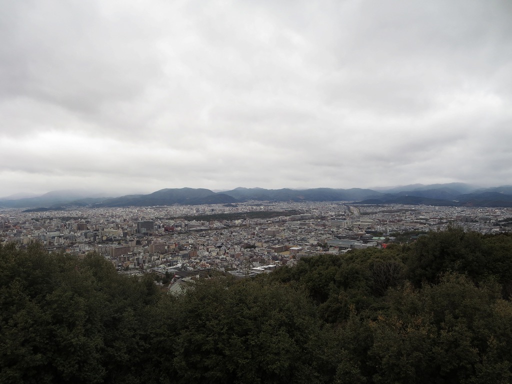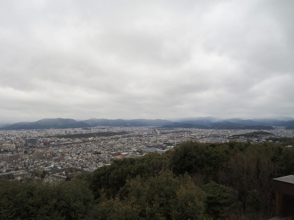 その期待を裏切らず、思わず声をあげるほどの素晴らしい景色です!曇天でも感動できるほどです。広がった景色は遠く山に囲まれ、京都が盆地だということが本当によく分かります。平安神宮、鴨川、京都御所・・・京都の地図を見ているようです。