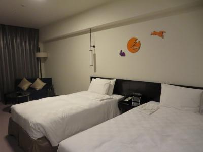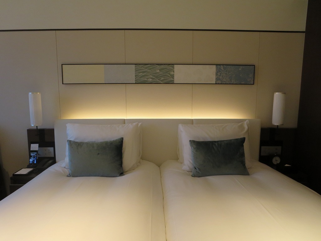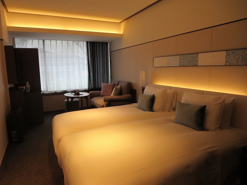 スタンダードツイン利用です。柔らかい色合いを基調とした落ち着いた雰囲気。面積は25㎡ということですが、レイアウトの関係か、ちょっと狭く感じました。
