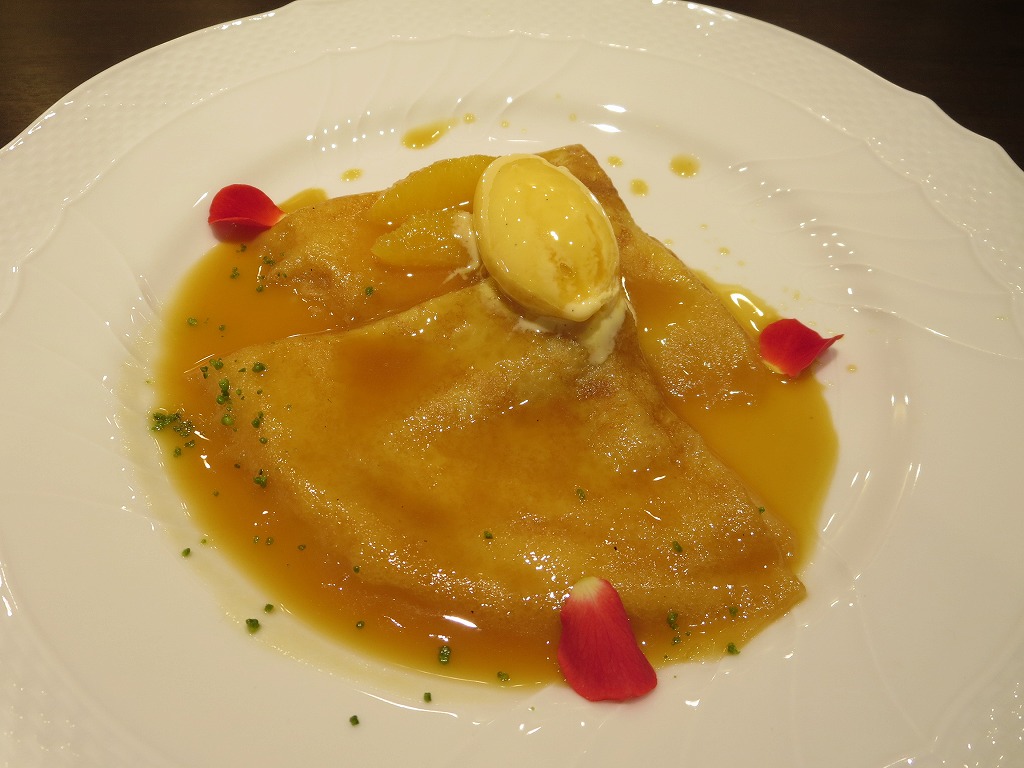 グランデセールは、おそらくこちらのお店のシグネチャーであるクレープシュゼットにしました。オレンジソースはリキュールよりも、オレンジの果汁をふんだんに感じます。