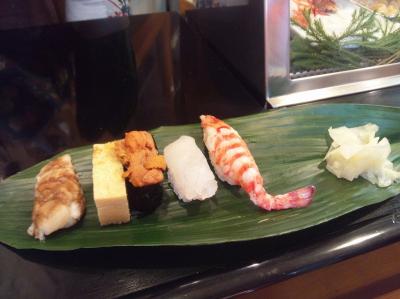 あいなめ、中トロ、大トロ、あなご、うに、こち、えび、鉄火巻き+玉子焼きでした。