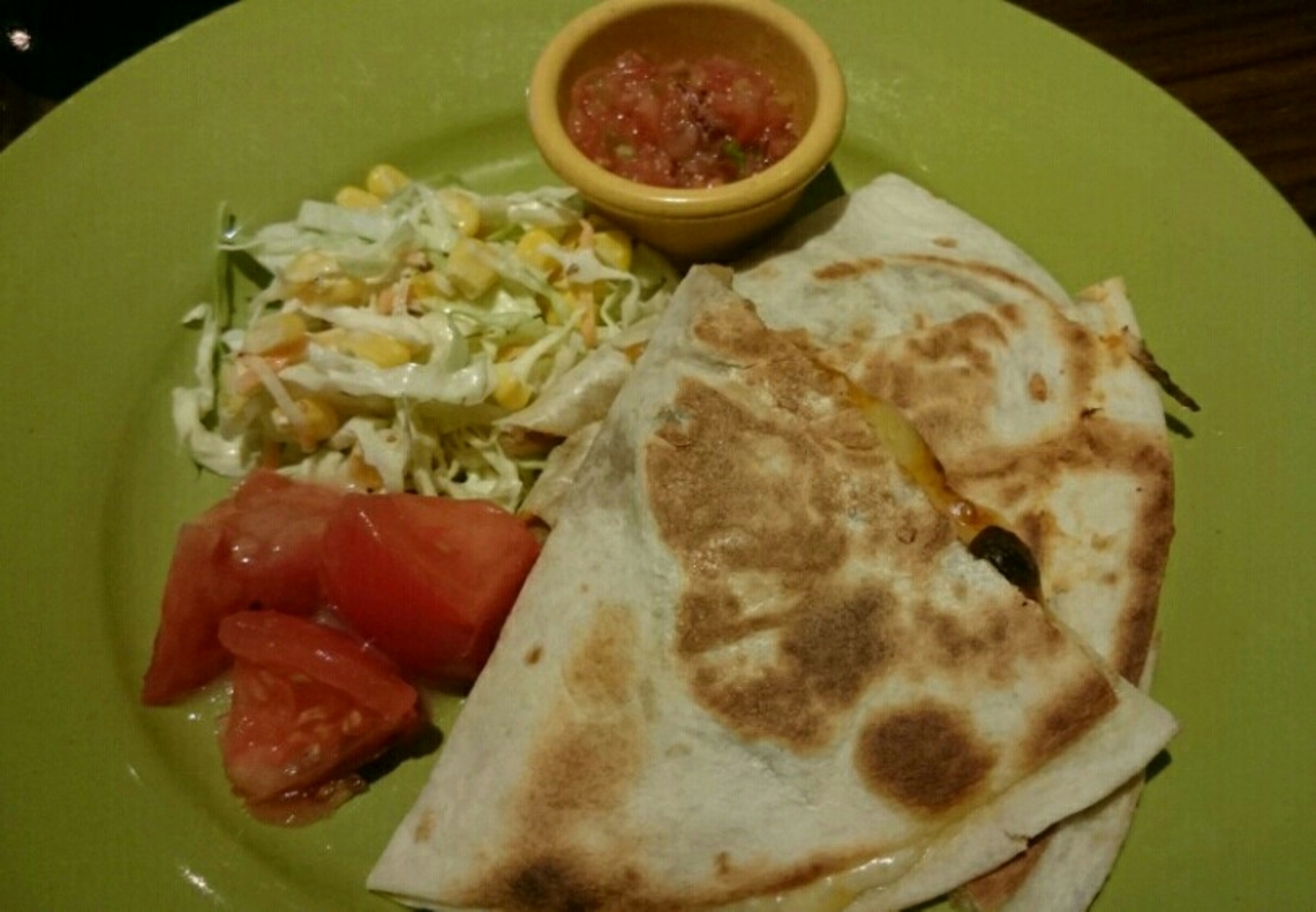ランチは数種類あり、スープやドリンクがついて1000円。ビーフケサディージャをチョイスしました。