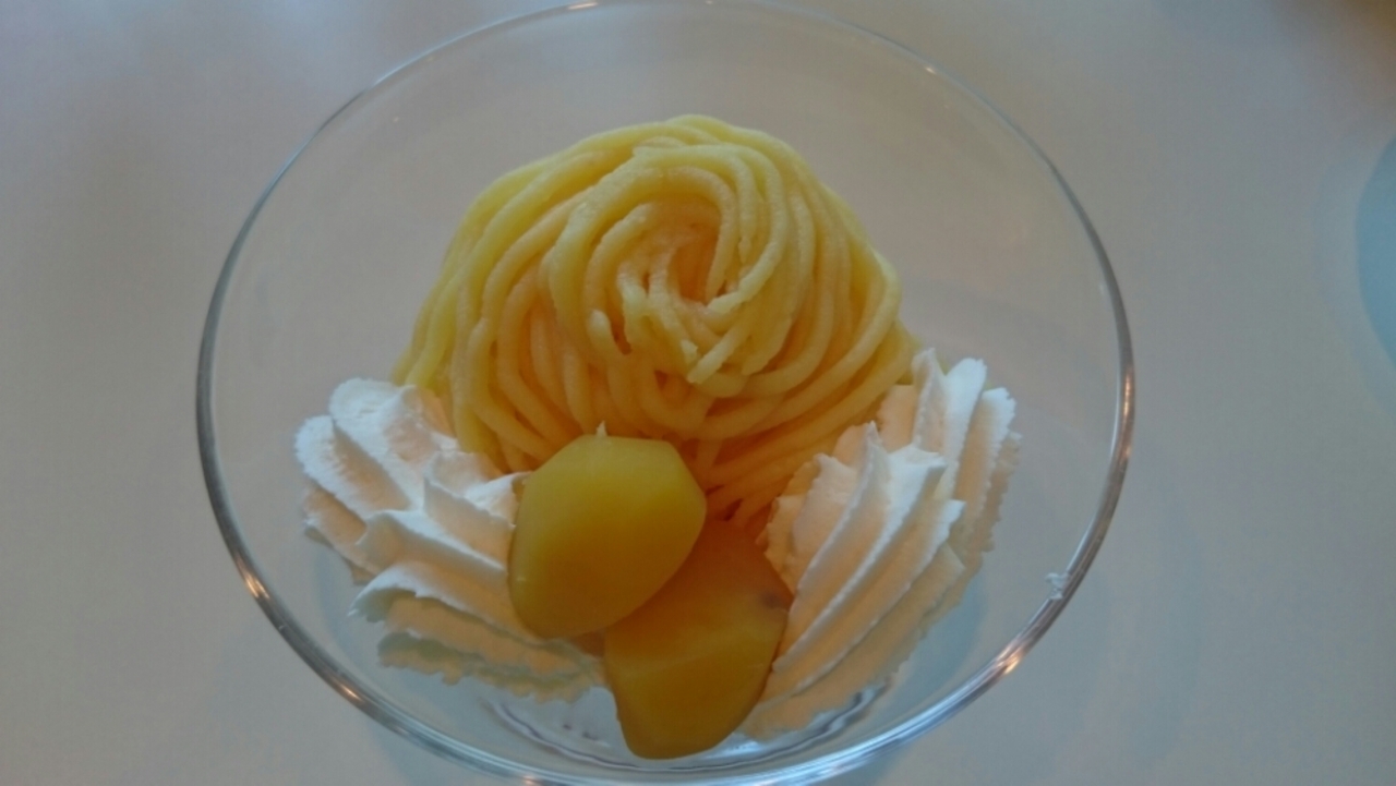 大きなバニラアイスクリームの周りに、モンブランクリームがたっぷり。しっかり甘いのに何故かくどさのない仕上がりです。