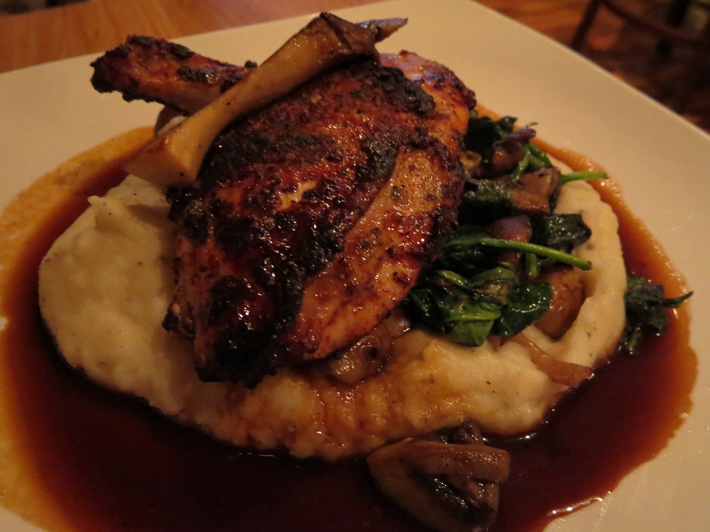 チキンは、下に敷かれたマッシュポテト&マッシュルームとソースのマリアージュが絶品!絶対に食べるべき一品です。ナイラギは、焼き加減が絶妙!