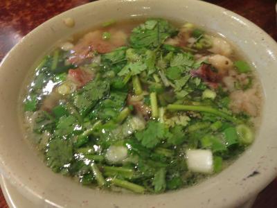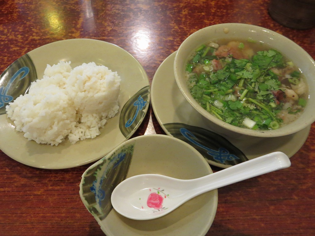 肝心のお味は、しっかり塩分はついているものの、体に染み渡る優しさあり◎お肉はそのままでも十分美味しいですが、テーブルに置いてある醤油とおろししょうがでいただくのもアクセント。パクチーもいい味出してます!