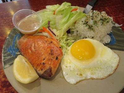 オーダーは、名物(?)チキンのグリルと、本日のおすすめのナイラギ(白身魚)のソテー。